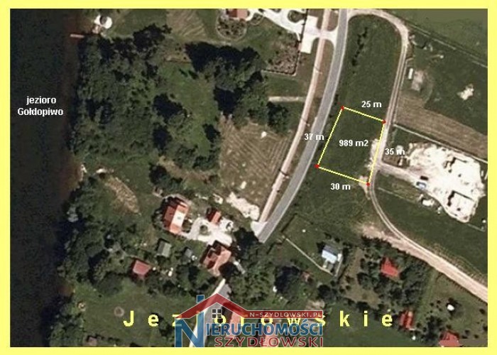 Działka o pow. 968 m2 w cenie 95.000,-zł w turystycznej miejscowości, położone na wzniesieniu z widokiem na jezioro Gołdopiwo. Usytuowanie i kształt działki na załączonych mapkach. W stosunku działki (150 m od jeziora) wydana decyzja o warunkach zabudowy, która zakłada budowę budynku mieszkalnego jednorodzinnego, parterowego z poddaszem użytkowym, murowanego, podpiwniczonego, o długości elewacji frontowej do 12 m i wysokości do 8 m, z dachem dwuspadowym, symetrycznym o kacie nachylenia połaci w granicach 35-45 st. Media: energia elektryczna i wodociąg przy działce.