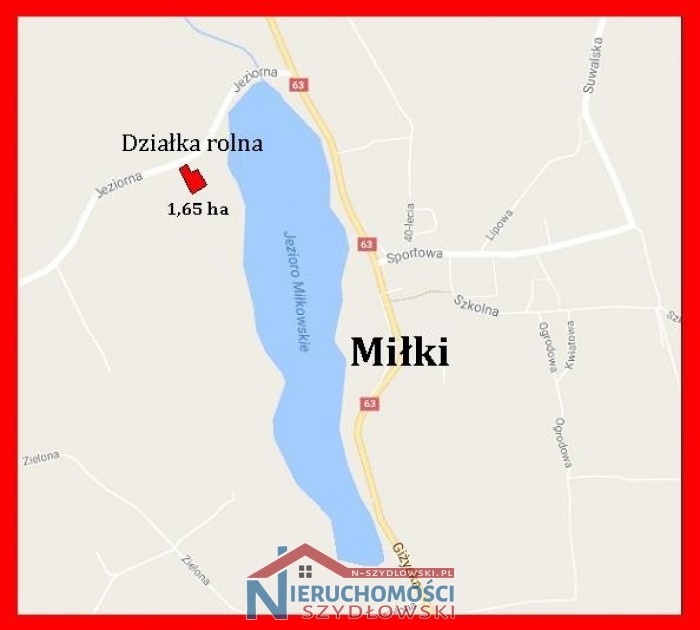 Nieruchomość rolna niezabudowana o pow. 1,65 ha, położona bezpośrednio przy drodze asfaltowej, przy wyjeździe z Miłek w kierunku Rydzewa, Paprotek i Marcinowej Woli. Teren pofałdowany, grunt uprawiany. Z uwagi na istniejące zabudowania na działkach sąsiednich, możliwość uzyskania warunków zabudowy siedliskowej lub mieszkaniowej. Wszystkie media w drodze. Polecamy.