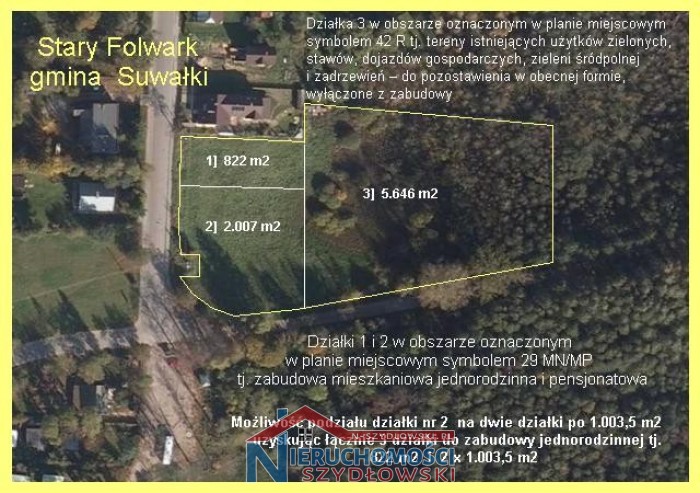 Działkę nr 2] o pow. 2.007 m2 - zgodnie z założeniami planu - dla celów zabudowy jednorodzinnej można podzielić jeszcze na dwie mniejsze o powierzchni 2 x 1.003,50 m2, w następstwie czego w ramach tej samej nieruchomości można uzyskać 3 działki do zabudowy jednorodzinnej tzn. 1 o pow. 822 m2 i 2 po 1.003,50 m2.