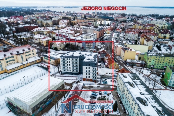 Budynek w nowoczesnej architekturze i o nieszablonowej bryle z 49 mieszkaniami i 1 lokalem usługowym na 6 kondygnacjach nadziemnych (parter + 5 pięter) oraz z 35 miejscami postojowymi w garażu podziemnym w ramach kondygnacji podziemnej. Wykonany z bardzo dobrych materiałów oraz zgodnie ze sztuką budowlaną, o co zadbał Inwestor Przedsiębiorstwo Handlowe M6 Jarosław Sulewski z siedzibą w Giżycku. Zlokalizowany w centrum administracyjnym miasta, a jednocześnie zaledwie 700 m od plaży miejskiej przy jeziorze Niegocin (szlak Wielkich Jezior Mazurskich) i z drugiej strony 1.500 m od jeziora Kisajno (szlak Wielkich Jezior Mazurskich). Zamiast słów, lepiej niech przemówią zdjęcia z lotu ptaka, które przedstawiają w realu przedmiotowy obiekt oraz jego usytuowanie względem jezior, instytucji publicznych, jak też pozostałej części miasta. Perełka. Kupujesz mieszkanie Tu i Teraz, które możesz obejrzeć i ocenić. Zapraszamy.